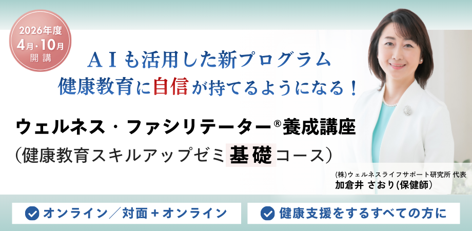 *【3月31日までにお申込みの方】は、特典として、2026年度の健康教育スキルアップ研究会の正会員資格(30,000円相当)も授与します。年6回研究会とWOMANウェルネスライフ研究会(年2回)のリアルタイム参加は【無料】となります。
